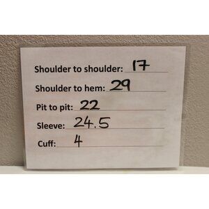 See measurements in images / listing and compare them to your best fitting garment to get sizing.