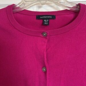 Lands' End women’s pink button down cardigan sweater size medium petite