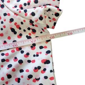 Lands' End women's polo shirt white with abstract polka dots in navy, coral, and pink. Size small, never worn, excellent pre-owned condition.