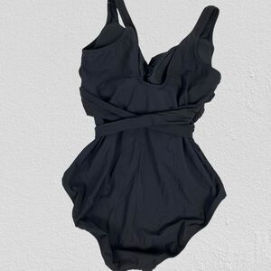 Lands' End Black Wrap with Tummy Control with soft padded support.