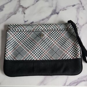 Lands' End Black and White Checkered Bag Houndstooth Plaid Wristlet Wallet Pouch