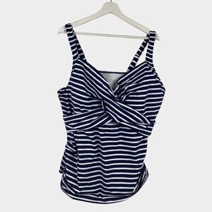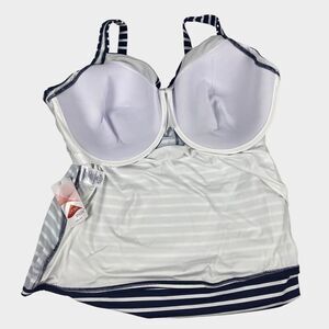 Lands' End Blue & White Underwire Tankini Top Size 24W DDD NEW