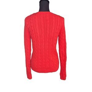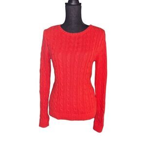 Burnt orange cable knit sweater. Button design on left shoulder. Long sleeve. Crewneck. 100% baumwolle. Size: XS (2-4). Preowned in good condition.