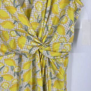 Lands End Dress Size Medium 10 Petite Womens Yellow Lemon Print Sleeveless Wrap
