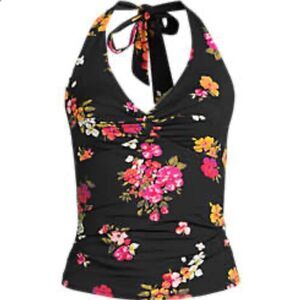 Land's End Halter Tankini top tankini top adjustable soft black meadow floral 12