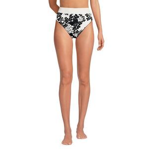 Land's End High Leg Reversible bikini bottom in black egret floral shadow print M 10-12