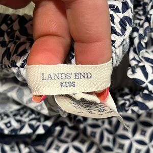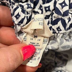 Lands' End Kids Girls Pull-On Shorts Elastic Waist Cotton Blue White M 10-12