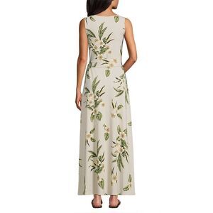 Land's End Maxi Dress Sleeveless Tie Cotton Modal light stone cream plumeria Medium Tall