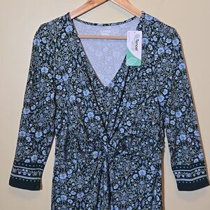Lands End Modal Floral Dress Front Twist Size Small Tradwife Modest Knee Length