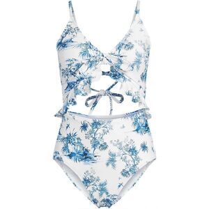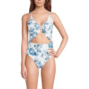 Land's End Plus and Standard size one piece swimsuit Monokini Tie front and back ruffle White Country Meadow in various sizes below