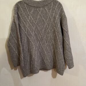 Gap warm and cozy 3/4 sleeve light gray crew neck sweater. Beautiful diamond shaped cables. Soft fuzzy and somewhat oversized