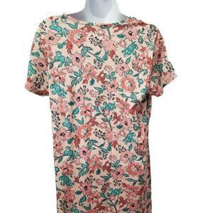 Women's Lands' End short sleeve t-shirt dress. Pink floral soft cotton knit. Great pre-owned condition!