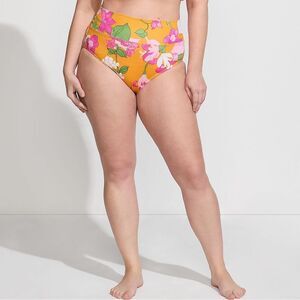 Land's End Plus Standard Pinch-less Bikini Bottoms sweet mango lilies floral Var