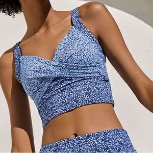 Land's End Plus size cropped bikini Midkini top soft cup Navy Mix Ditsy Various