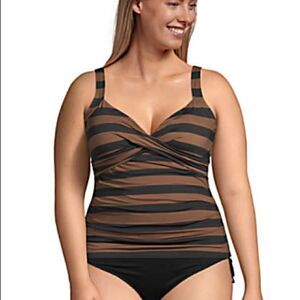 New Land’s End Plus size Wrap underwire tankini top in black allspice chevron stripe, various sizes available below.