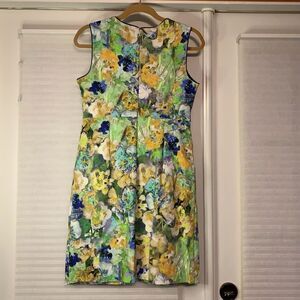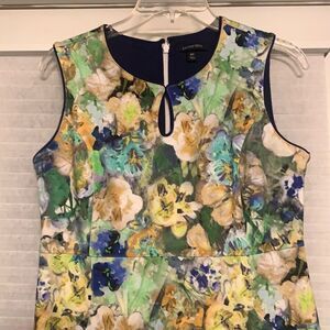 Lands End Sleeveless Lined Blue Green Floral Dress Pockets 6 Petite
