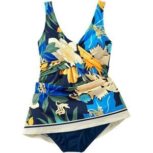 Land's End Slender Suit Wrap Dress soft cup Navy floral Blooms Border size Var