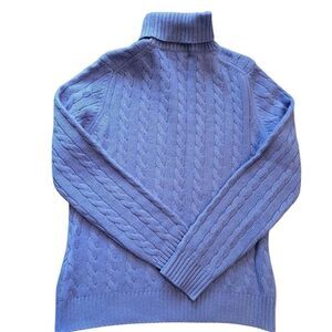 Land's End Sweater Women's Medium Periwinkle Cashmere Cable Knit Turtleneck