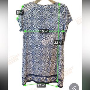 Lands’ End Sz M 10/12 Casual Summer Blue White Pattern Shift Dress