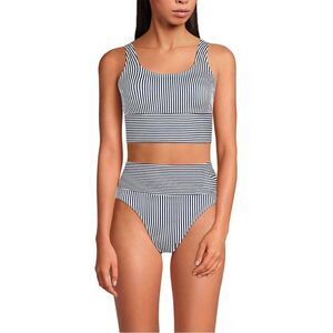 Land's End Tankini Top Tuggless Swimsuit Top Black Egret Varigated Stripe Var