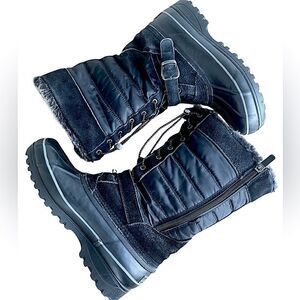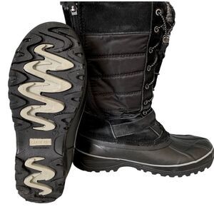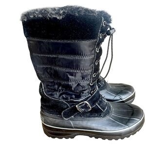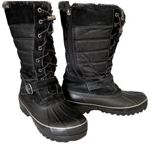 Lands End Woman Hillary Tall Snow Boot Lace Front Side Zip Faux Fur Black Sz 7