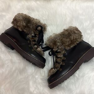 These boots are in brand new condition. They are genuine leather with faux fur trim. They are a women’s size 7 1/2.
