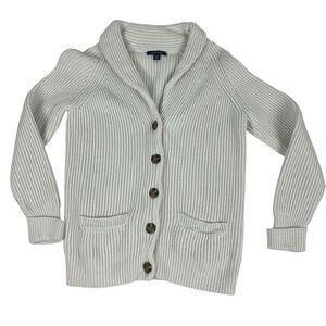 Lands End Women’s Cream Button Front Shawl collar Sweater size Small