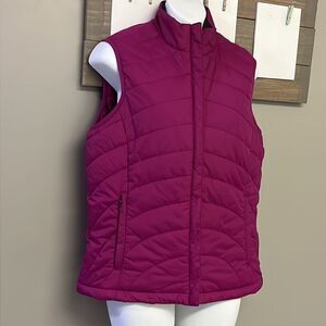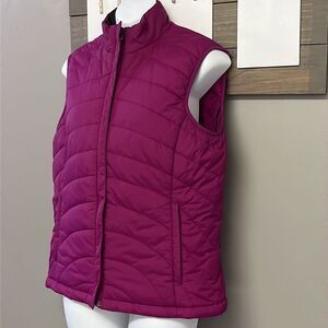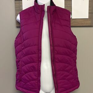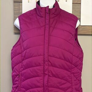 Land’s End Women’s Fuchsia Black Sleeveless Full Zip Puffer Nylon Vest-Small 6-8