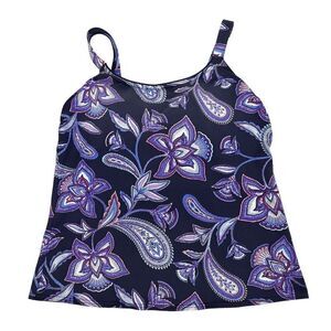 Lands’ End Women’s Navy Purple Tankini Top size 8