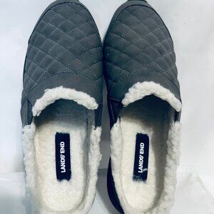 Lands' End-Women's Size 7B Slip On Quilted Sherpa House Slippers-Gray/Cream-Comf