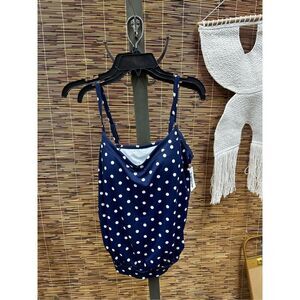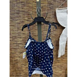 Lands' End Women's UPF 50 Polka Dot Blouson Tankini Top - Navy Blue M