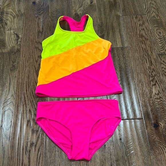 Lands End girls tankini. Sz 12. Pink/yellow/orange