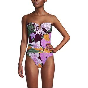 Land's End plus size slender suit U wire Bandeau dark wine multi floral Top Var