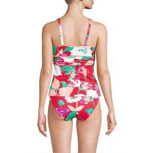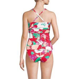 Land's End plus tankini top deep plunge adjustable coral roses lilies Various