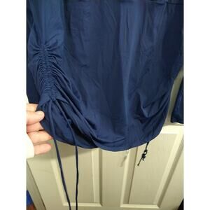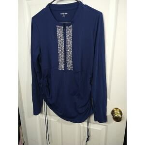 Lands End woman M blue long sleeve swimsuit cover in excellent condition. Scrunched adjustable sides 1/2 zip white embroidery sides front.