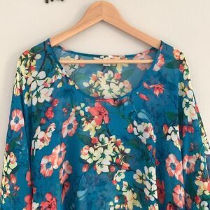 Lands End tropical beach floral bathing suit pool cover up vacation size XS