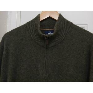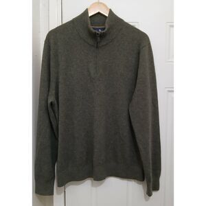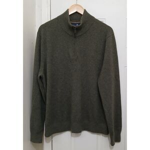 Lands end 100% cashmere mens 1/4 zip large 42-44 sweater pullover army green