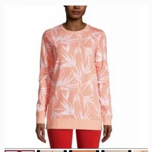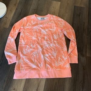 Extra long and roomy. Great peachy color. Terr cloth inside. A perfect sweatshirt