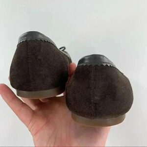 Lands end ballet flats size 8 38 chocolate brown suede bow round toe balletcore