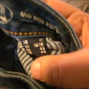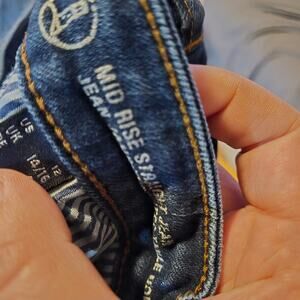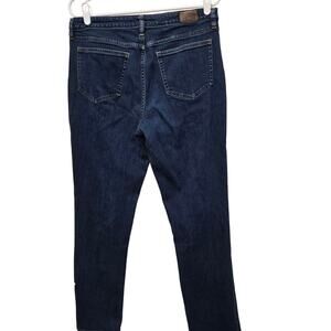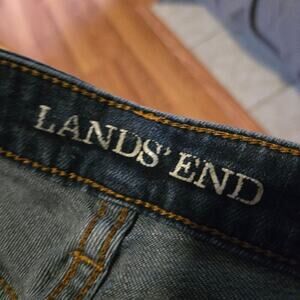 Lands end jeans womens size 12 blue mid rise straight jean denim classic length is 38in waist 16in inseam 28in rise 9.5in leg opening 7.5in measurements are approximate not exact and is not doubled and are measured with the item laying flat