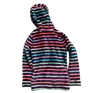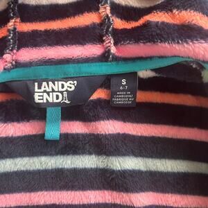 Lands end rainbow striped plush fleece jacket full zip hoodie small 6 7 navy