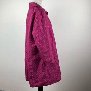 Lands end woman’s trench coat sz XL P 18-20 purple white polkadot button down long pockets rain wind packable jacket