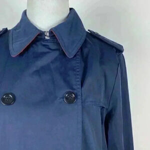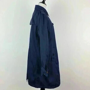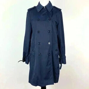 Lands end womens double breasted trench coat size M 10-12 Navy blue long rain jacket