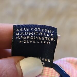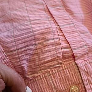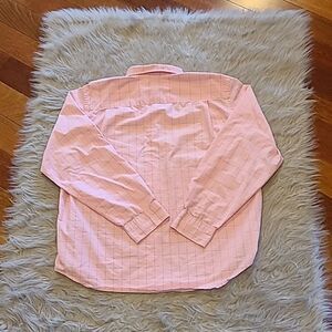 Lands end womens pink and gray cotton long sleeve button down shirt size 14
