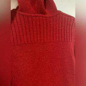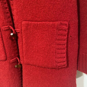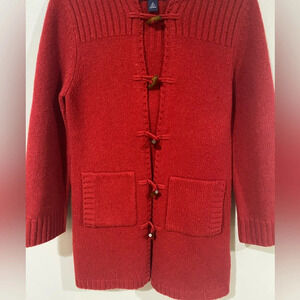 Lands end wool hooded red cardigan womens medium SMALL HOLES