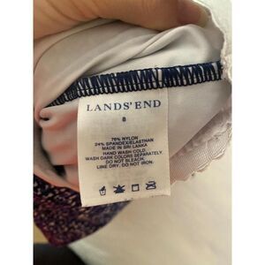 Lands’ End 8 One Piece Swimsuit Blue White Halter Neck slimming
