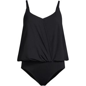 Land's End Plus and Standard Blouson V neck Adjustable Fauxkini One Piece Bathing Suit Black Various sizes below