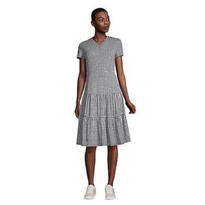 Land’s End Dress Short sleeve tiered dress Baltic teal palm knit pockets Med T