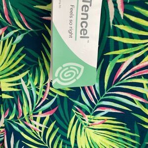 New Land’s End Short sleeve tiered dress Baltic teal palm print ruffle bottom Tencel knit dress Medium Tall, fit’s size 10 to 12