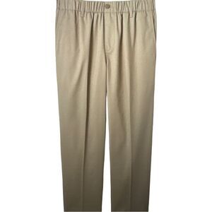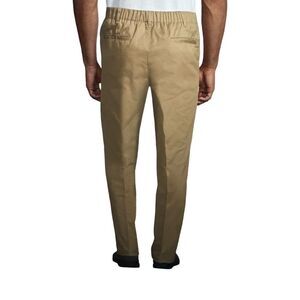 Classic khaki chinos that offer versatile style. These pants feature an elastic waistband for added comfort, making them suitable for both casual and formal occasions.